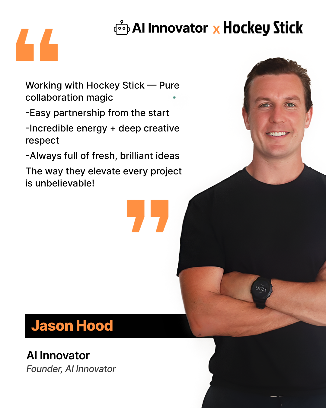 Working with Hockey Stick — Pure collaboration magic. • Easy partnership from the start • Incredible energy + deep creative respect • Always full of brilliant ideas.